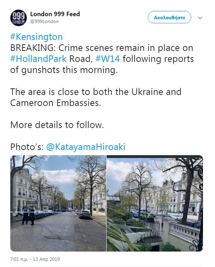 Σύμφωνα με τις πρώτες πληροφορίες, αυτόπτες μάρτυρες έκαναν λόγο για 10 πυροβολισμούς στην περιοχή του Holland Park.