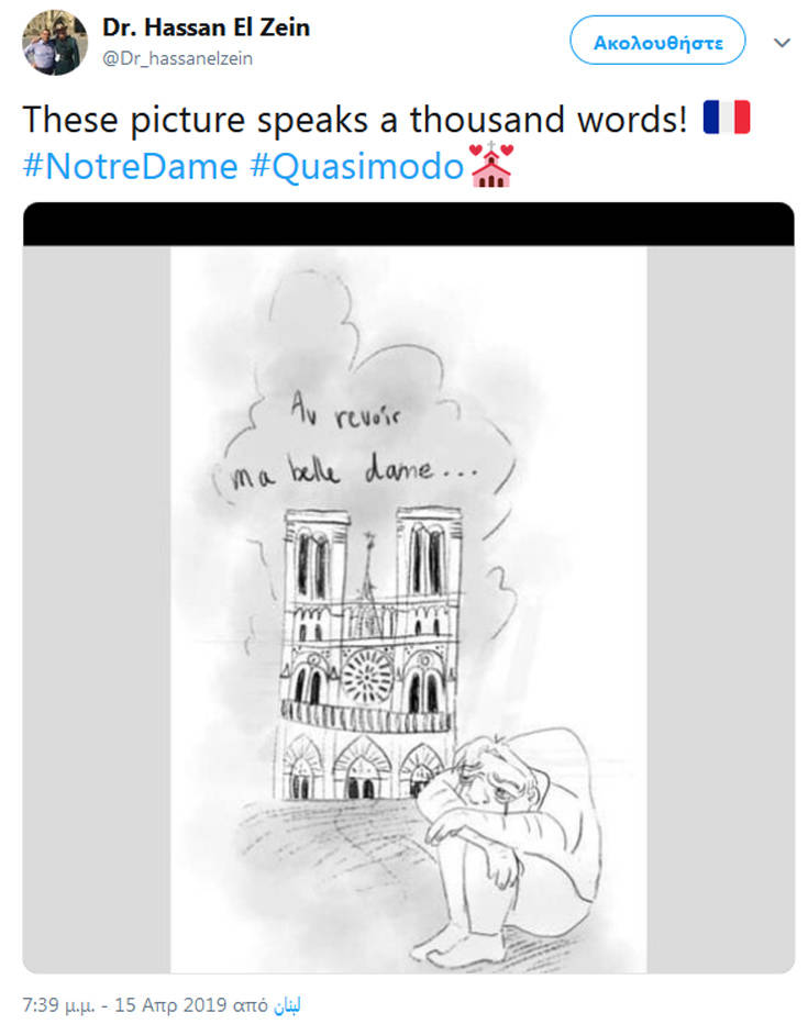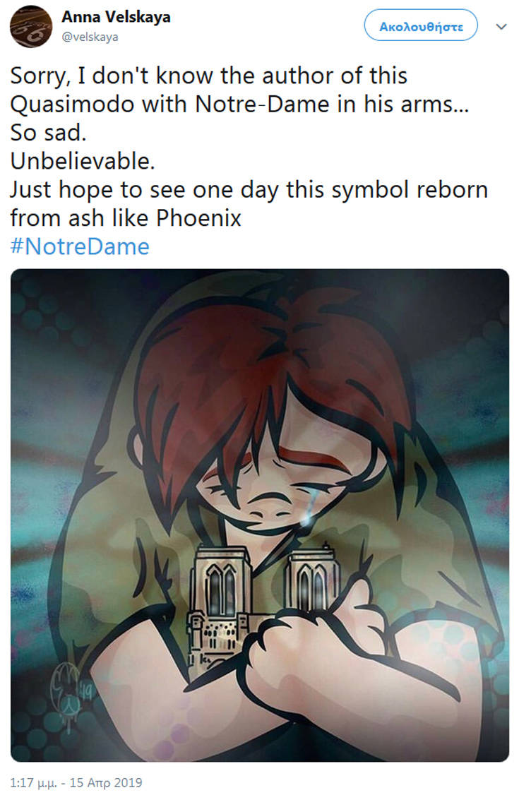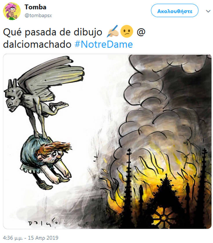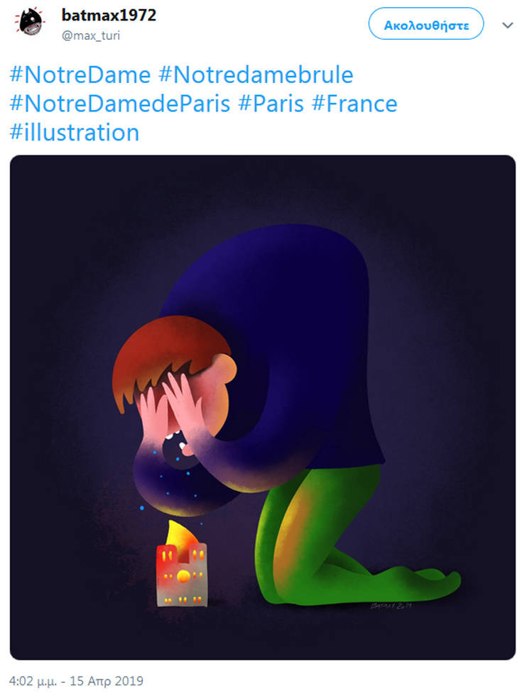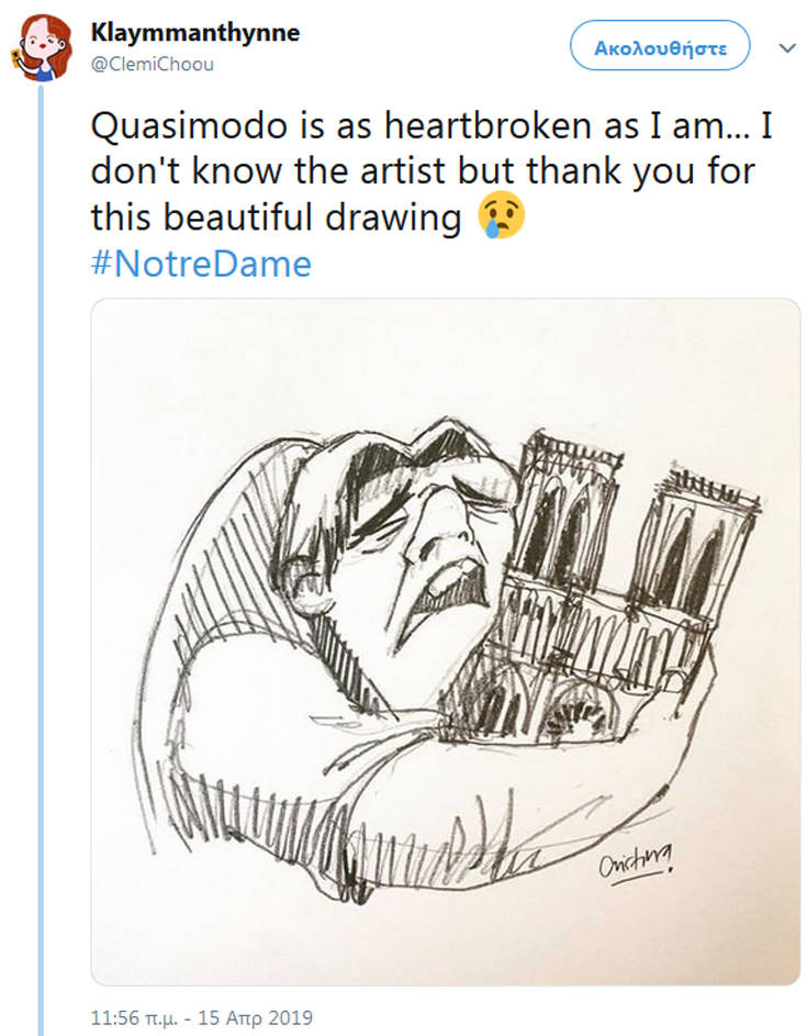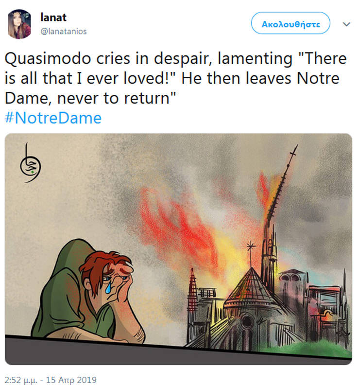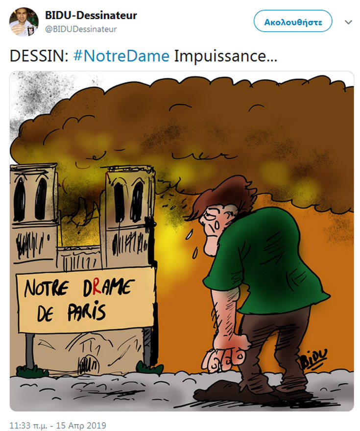 Η θλίψη που έχει προκαλέσει η είδηση όχι μόνο στους Παριζιάνους ή ευρύτερα στους Γάλλους είναι μεγάλη, με το γεγονός να αποτελεί έμπνευση για τους σκιτσογράφους, που με τα δικά τους μέσα αποτύπωσαν τη θλίψη τους.