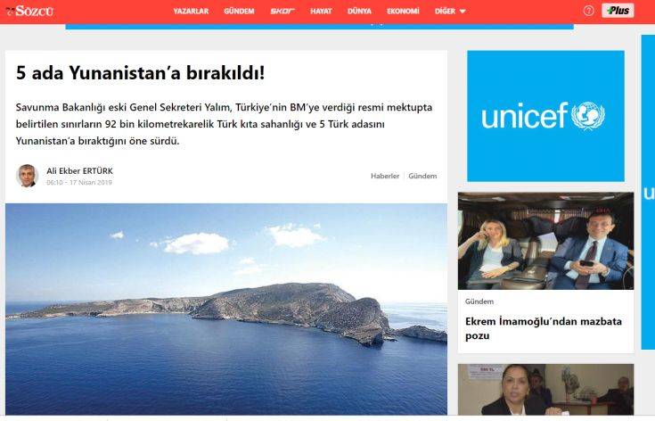 Σύμφωνα με την εφημερίδα Sözcü, ο Τούρκος πρώην αξιωματούχος αναφέρθηκε στην επιστολή που στάλθηκε προς τα Ηνωμένα Έθνη τον Μάρτιο, η οποία «δώρισε», όπως ισχυρίζεται, στην Ελλάδα νησιά και υφαλοκρηπίδα.