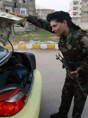 Σκληρή κριτική δέχεται από τους αντάρτες ο Σύρος πρόεδρος Μπασάρ αλ Άσαντ ο οποίος έχει συγκροτήσει ένα στρατό από γυναίκες πολλά σημεία – κλειδιά της χώρας. Κύρια δουλειά των 500 γυναικών που βρίσκονται σε αυτά τα σημεία είναι να κάνουν ελέγχους ασφαλείας.
