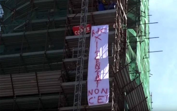 Οι Μίμο Μινιάνο και Μάρκο Κουζάνο, ύψωσαν από το καμπαναριό του ναού και μία επιγραφή που έγραφε: «Εγγυημένο κοινωνικό επίδομα για τους απολυμένους δεν υπάρχει». Στο σημείο συγκεντρώθηκαν και πολλοί άλλοι απολυμένοι, ή άνεργοι, που διαμαρτύρονταν για την πολιτική της χορήγησης του επιδόματος, που αποτελούσε την προεκλογική «σημαία» του κόμματος των Πέντε Αστέρων και η αμφιλεγόμενη μέθοδος και τα κριτήρια της καταβολής του έχουν προκαλέσει πολλές συζητήσεις, όπως αναφέρει το Αθηναϊκό Πρακτορείο Ειδήσεων.