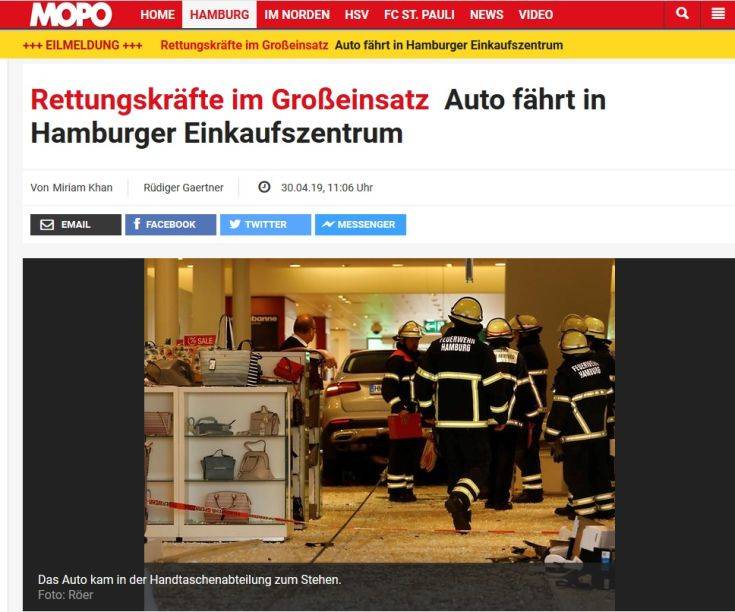 Η εφημερίδα Hamburger Morgenpost αναφέρει το περιστατικό σημειώθηκε στο εμπορικό κέντρο Galeria Kaufhof στη συνοικία Poppenbuttel της γερμανικής πόλης.