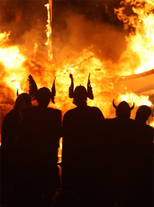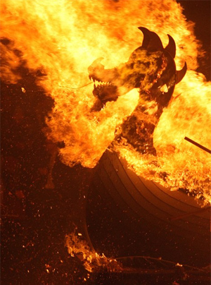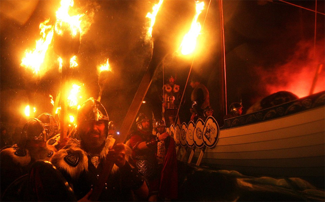 Στο εντυπωσιακό φεστιβάλ πάνω από 900 συμμετέχοντες γιορτάζουν την κληρονομιά των Βίκινγκς στα νησιά Σέτλαντ. Οι εορτασμοί περιλαμβάνουν τη μεταμφίεση σε βίκινγκ με ασπίδες, τσεκούρια και κράνη, ενώ στο φετινό φεστιβάλ, ένα από τους σύγχρονους βίκινγκ θέλησε να απαθανατίσει το γεγονός με την ψηφιακή του κάμερα!