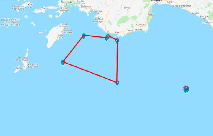 Παράλληλα, σε μια προσπάθεια «αποκοπής» της περιοχής, δέσμευσε και δεύτερη περιοχή ανατολικά της Ρόδου και νότια του Καστελόριζου για άσκηση με τη χρήση όπλων.