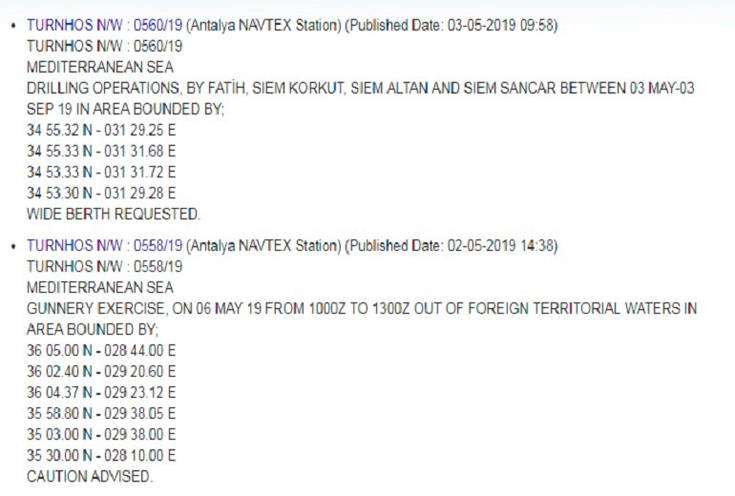 Συγκεκριμένα, με τη NAVTEX 0560/19 δεσμεύει παράνομα περιοχή δυτικά της Πάφου από σήμερα μέχρι και τις 3 Σεπτεμβρίου.
