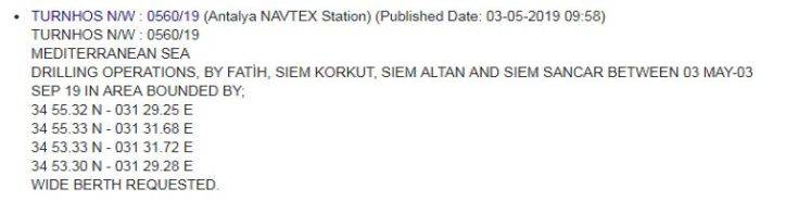 Στην Κύπρο ο υπουργός Άμυνας της χώρας Σάββας Αγγελίδης, είπε πως είναι γεγονός ότι έχει ανανεωθεί αυτή η παράτυπη NAVTEX ενώ πρόσθεσε πως η Κυπριακή Δημοκρατία σε συνεννόηση με διάφορες αρχές ουσιαστικά προβαίνει σε ενέργειες, συνεχίζει τον προγραμματισμό όσον αφορά το ενεργειακό της πρόγραμμα και πιστεύει σημείωσε, ότι σε αυτές τις προκλήσεις έχουν δοθεί απαντήσεις με την δική μας συμπεριφορά, συμπεριφορά χαμηλών τόνων, σύνεση αλλά και εργασία.