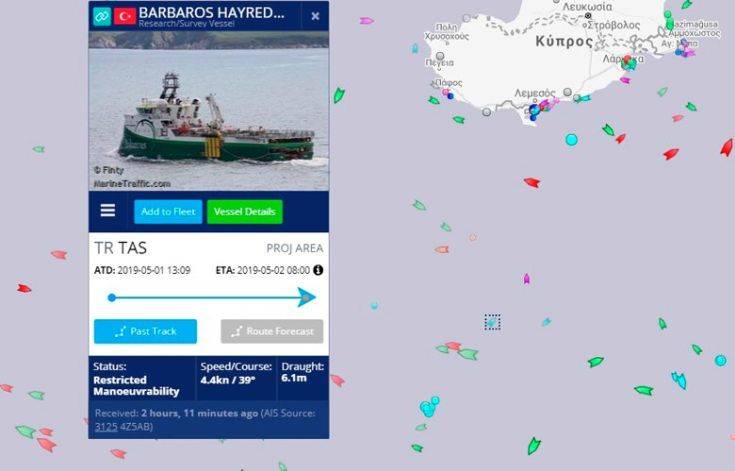 Την ίδια στιγμή σύμφωνα με το marinetraffic και το news.gr και το ερευνητικό Barbaros βρίσκεται νότια της Λεμεσού σε διεθνή ύδατα, αλλά εντός κυπριακής ΑΟΖ συνοδευόμενο από μια τουρκική πυραυλάκατο.