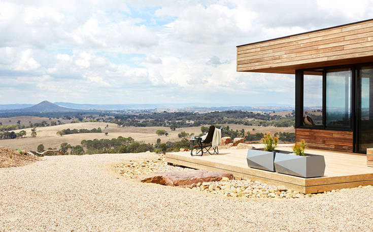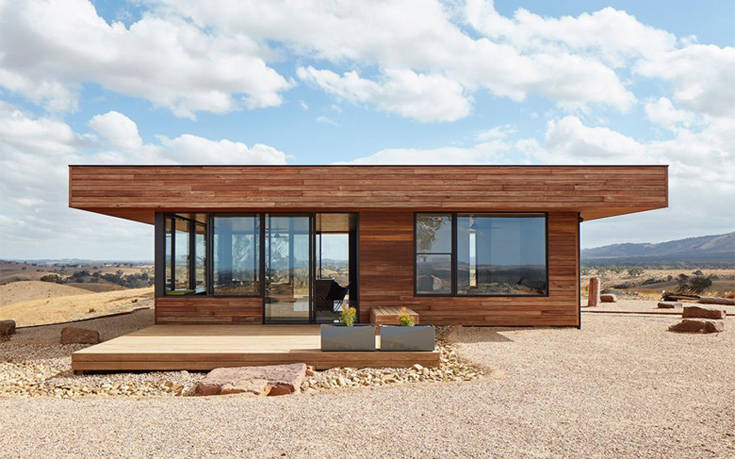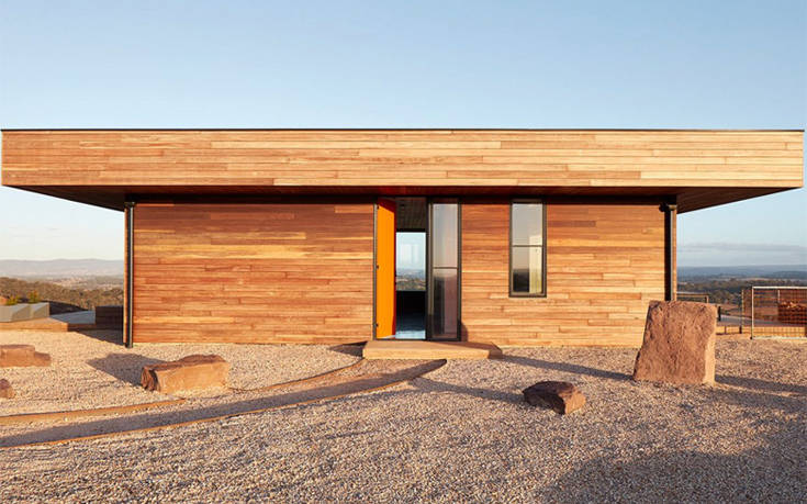 Το ντόπιο αυστραλέζικο ξύλο θα χάσει με τον καιρό το χρώμα του, κάνοντας το σπίτι να συγχωνευτεί ακόμα περισσότερο στο τοπίο.