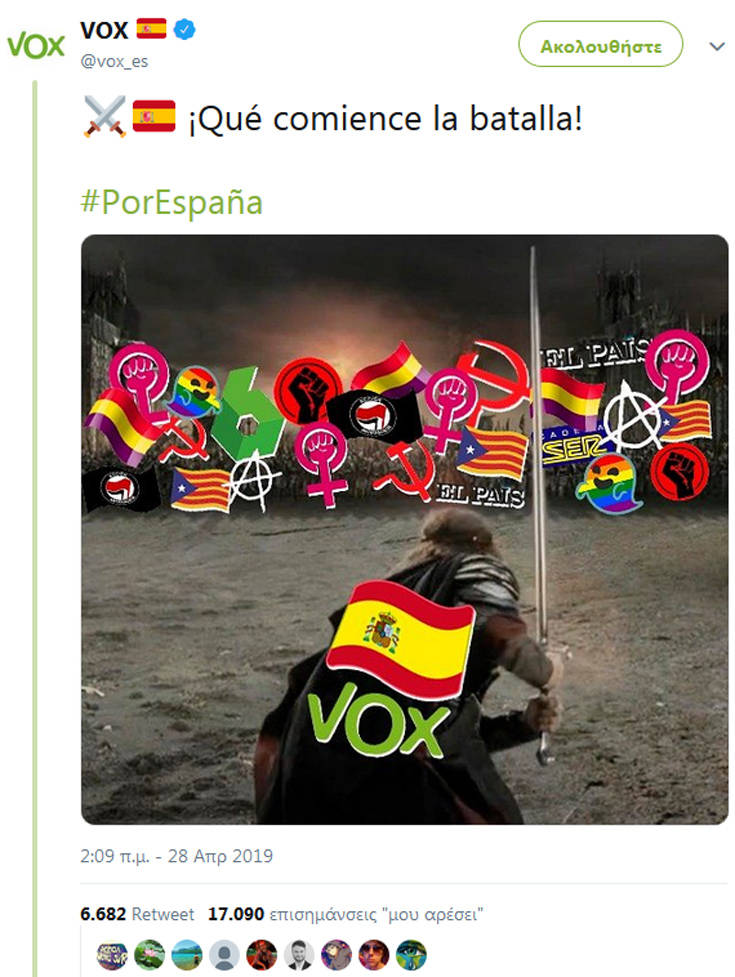 «Ας ξεκινήσει η μάχη!» #Για την Ισπανία», αναφέρεται στο μήνυμα, σύμφωνα με το Αθηναϊκό Πρακτορείο Ειδήσεων.