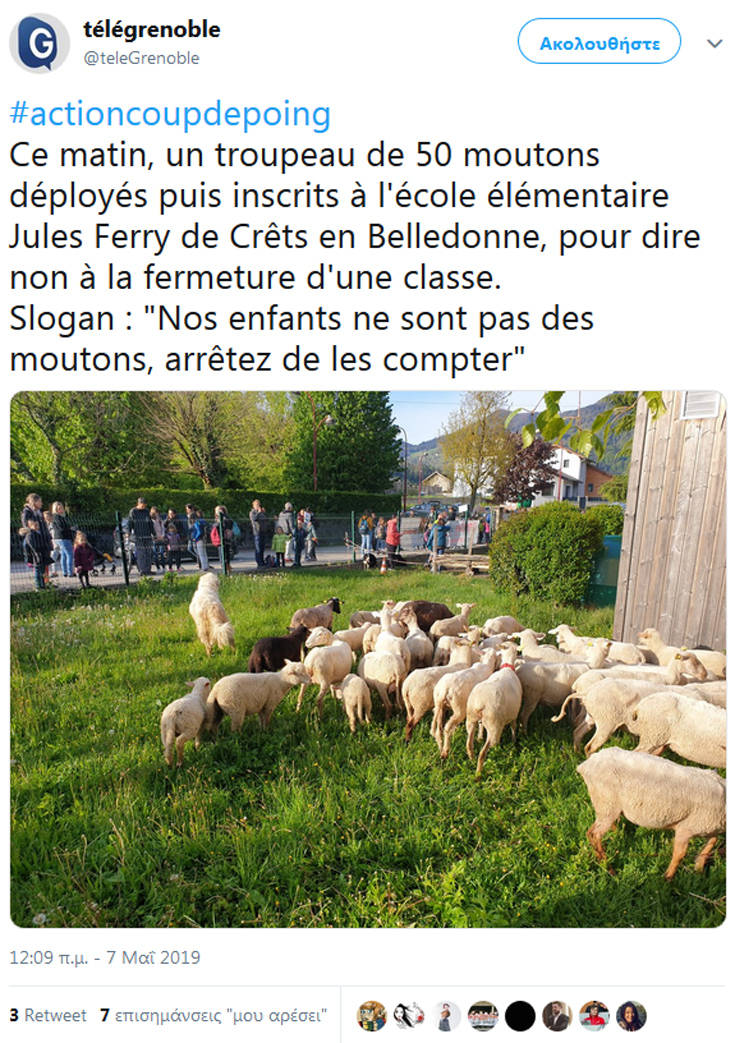 Για να μην κλείσει, λόγω έλλειψης μαθητών, μια τάξη σε ένα δημοτικό σχολείο στο χωριό Κρετ, στους πρόποδες των Άλπεων, οι γονείς έγραψαν συμβολικά 15… πρόβατα.