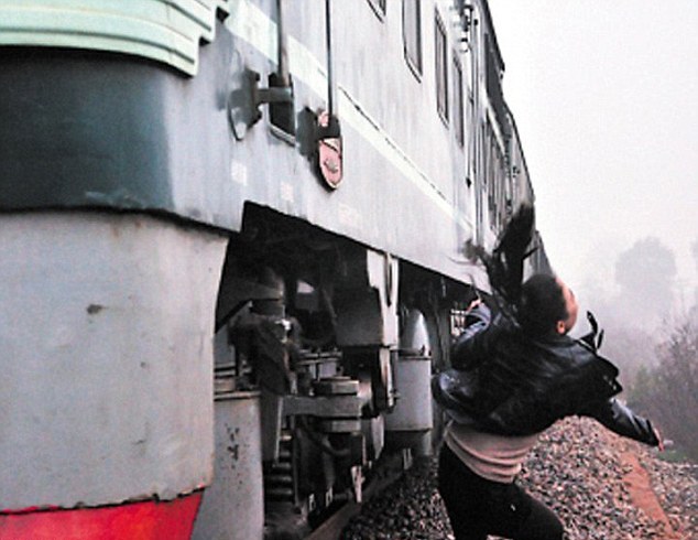 Όμως τη στιγμή που η νεαρή Li προσπάθησε να πάρει την… «κατάλληλη» πόζα το τρένο τη χτύπησε στον ώμο και την έριξε κάτω, ευτυχώς χωρίς να τραυματιστεί περισσότερο.