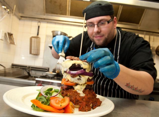 Για όσους ενδιαφέρονται το χάμπουργκερ-πρόκληση σερβίρεται στην The Duck Inn παμπ στο Oakenshaw.