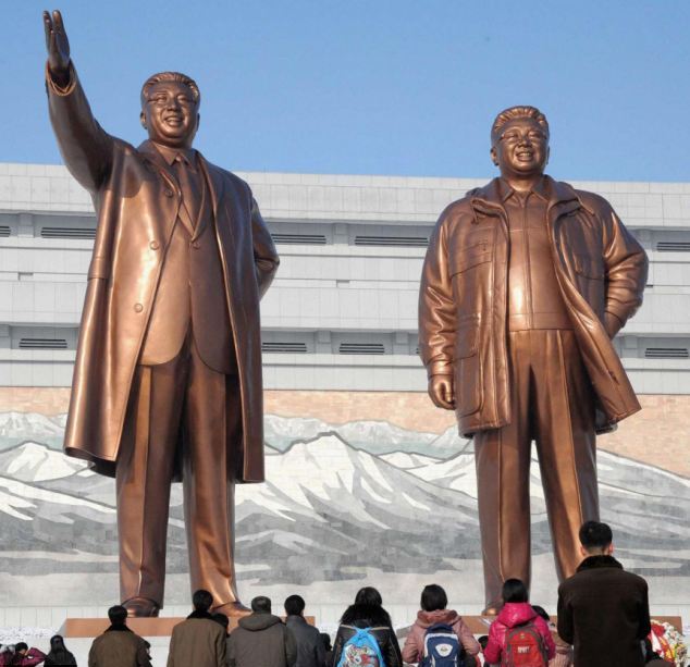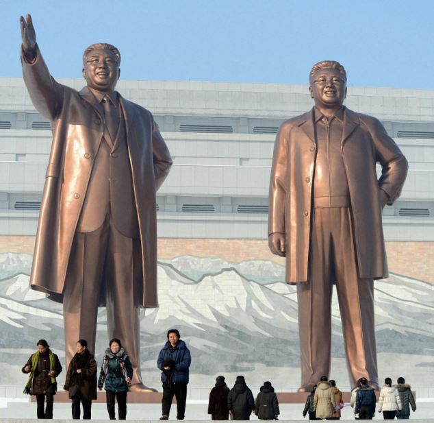 Πατέρας και γιος ατενίζουν το λαό της Βόρειας Κορέας από ύψος 25 μέτρων στην κεντρική πλατεία της Pyongyang.