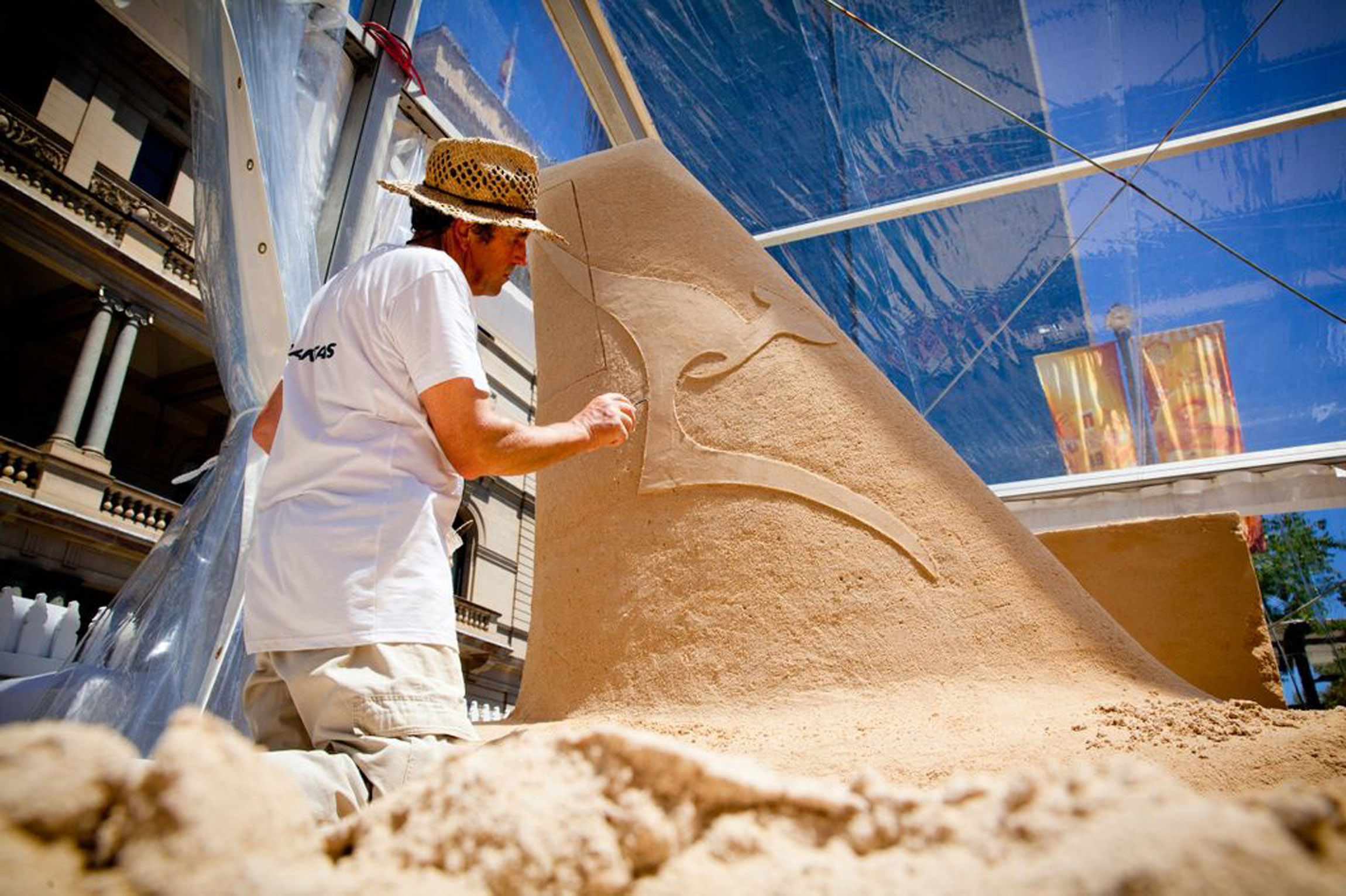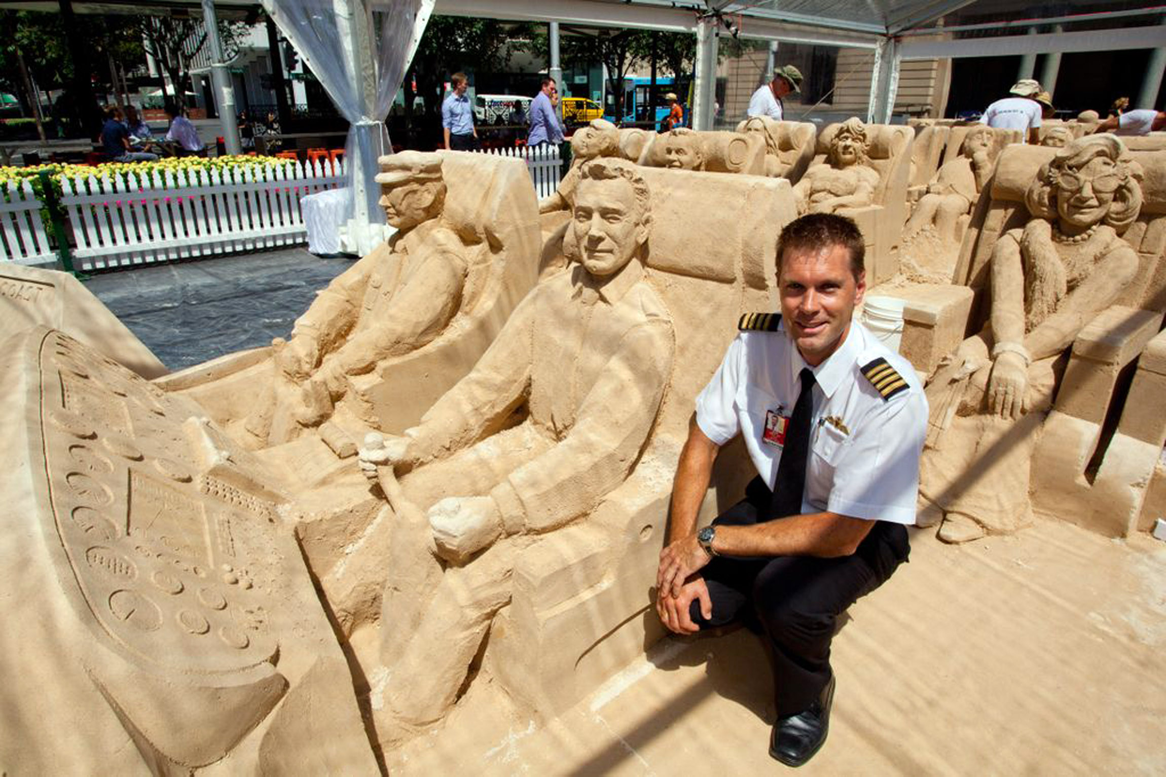 Είναι κακό στην άμμο να χτίζεις παλάτια… Πόσω μάλλον το να φτιάχνεις αεροσκάφη από άμμο. Κι όμως, καλλιτέχνες στην Αυστραλία κατασκεύασαν ένα εικονικό αεροπλάνο jumbo της αεροπορικής εταιρείας Qantas, με αφορμή κάποια νέα δρομολόγια.
