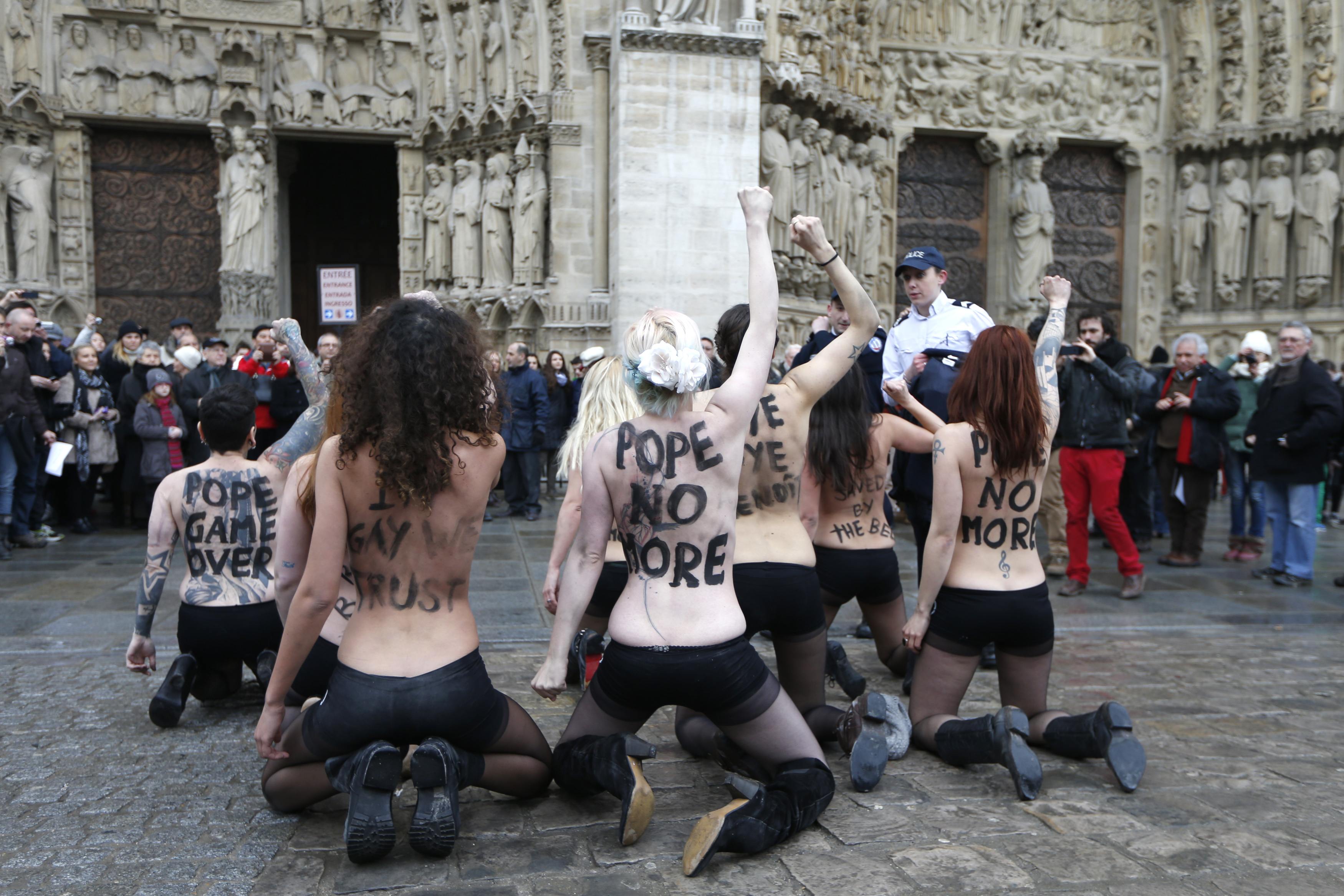 Είναι Ουκρανές, είναι νέες, είναι ωραίες, είναι γυμνόστηθες, είναι οι Femen. Είναι οι «σεξ-τρεμίστριες» που κήρυξαν «ανταρτοπόλεμο» στην πατριαρχία και που η τελευταία εκρηκτική εμφάνισή τους έγινε με την παραίτηση του Πάπα και την κατάληψη της Παναγίας των Παρισίων.
