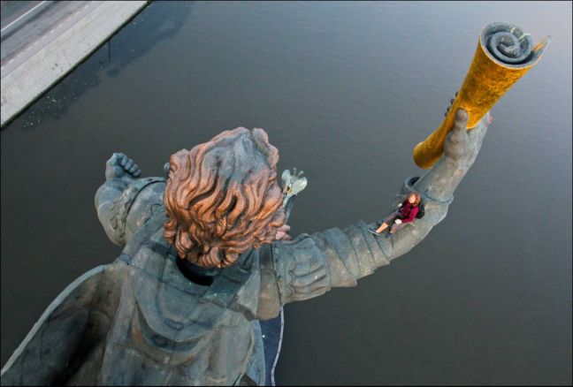 Δεν αρκέστηκε μάλιστα στην πόλη του αλλά διένυσε και περισσότερα από 700 χιλιόμετρα μέχρι την Αγία Πετρούπολη για να εφαρμόσει και εκεί την τέχνη του. Στο εγχείρημα αυτό βέβαια δεν είναι μόνος του αλλά έχει για συντροφιά περίπου 200 ανθρώπους ακόμη που μοιράζονται την ίδια τρέλα με εκείνον και οι οποίοι ποζάρουν με άνεση στο φακό του ακόμη κι όταν αιωρούνται κυριολεκτικά στο κενό.