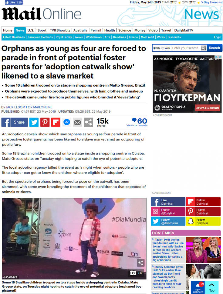 Παγκόσμια οργή προκάλεσε μια πασαρέλα με τετράχρονα ορφανά παιδιά, που διοργανώθηκε στη Βραζιλία, με στόχο να τα δουν οι υποψήφιοι ανάδοχοι και να διαλέξουν ποιο θέλουν.
