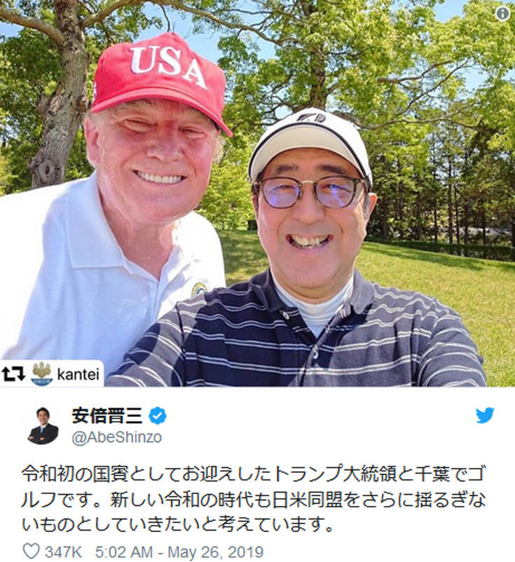 Μάλιστα ο Άμπε ανέβασε και μία σέλφι των δυο τους από το Mobara Country Club στο Τόκιο.