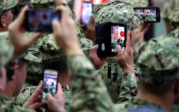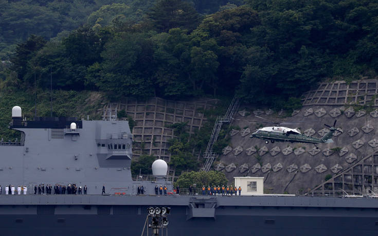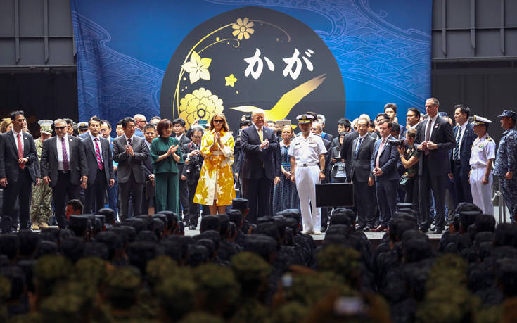 Ο Αμερικανός πρόεδρος Ντόναλντ Τραμπ αναμένει πως ο ιαπωνικός στρατός θα ενισχύσει τις αμερικανικές στρατιωτικές δυνάμεις στην Ασία και αλλού, όπως δήλωσε σήμερα επιθεωρώντας το μεγαλύτερο πολεμικό πλοίο της Ιαπωνίας, το Kaga, ελικοπτεροφόρο που είναι σχεδιασμένο να μεταφέρει ελικόπτερα που εντοπίζουν υποβρύχια σε μεγάλες αποστάσεις.