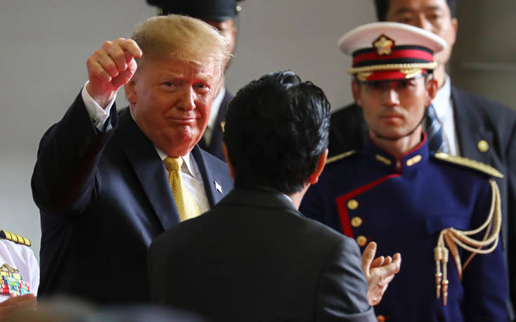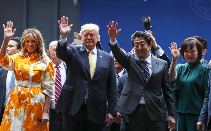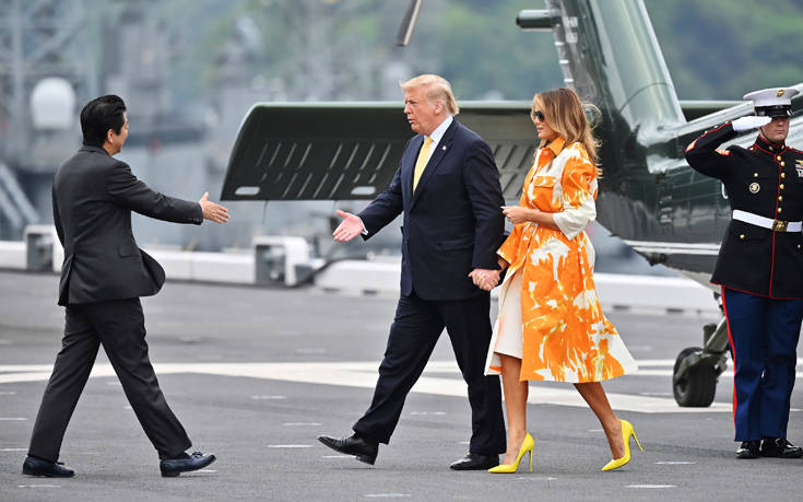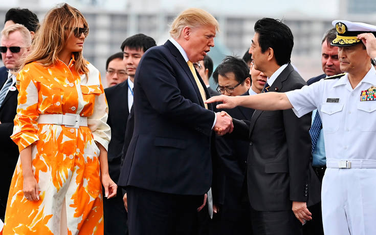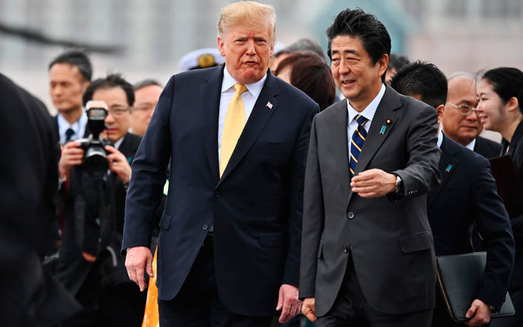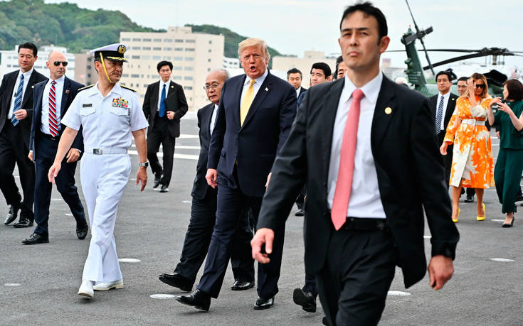 Ο Ιάπωνας πρωθυπουργός Σίνζο Άμπε συνόδευσε τον Τραμπ στο Kaga, καθώς ο Αμερικανός πρόεδρος ολοκλήρωνε την τετραήμερη επίσκεψή του στην Ιαπωνία.