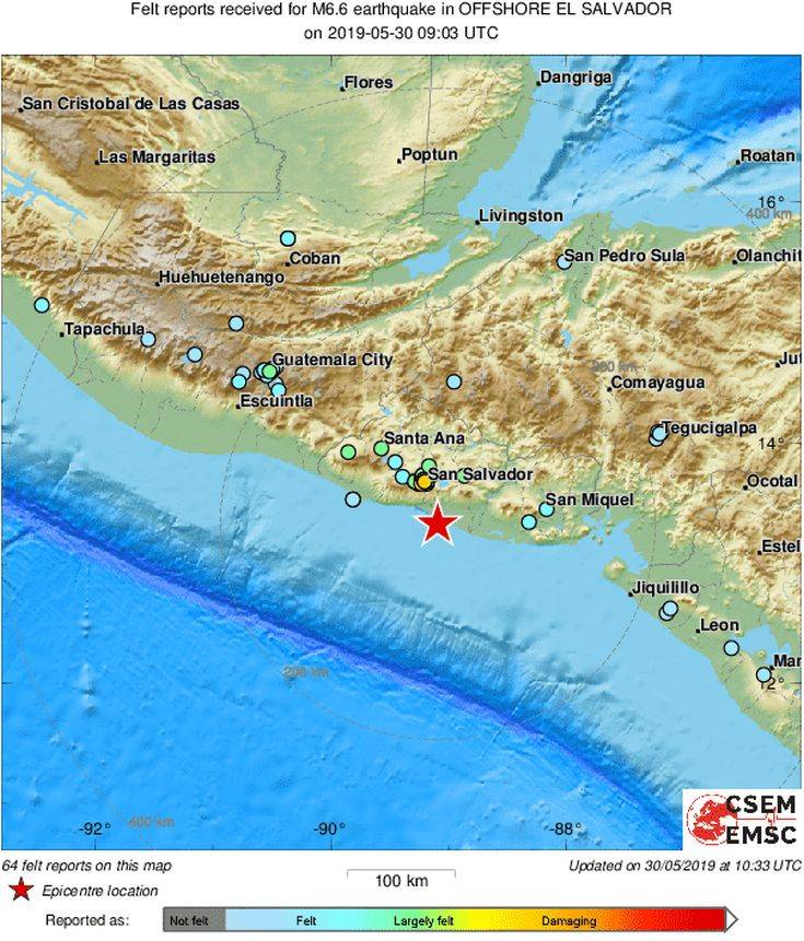 Προς το παρόν δεν υπάρχουν πληροφορίες για θύματα ή σημαντικές ζημιές, σύμφωνα με τις αρχές του Ελ Σαλβαδόρ.