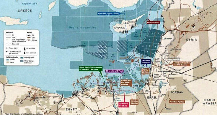 Ένας χάρτης που παρουσιάζει τα κοιτάσματα στην Ανατολική Μεσόγειο γύρω από την Κύπρο αλλά και τις υποδομές αξιοποίησής του έφερε χθες στην δημοσιότητα η ιστοσελίδα Μc Clatchy DC. Ο αποκαλυπτικός χάρτης του του Υπουργείου Ενέργειας (Bureau of energy Resources) των ΗΠΑ παρουσιάστηκε στον ίδιον τον Τούρκο Πρόεδρο Ταγίπ Ερντογάν κατά την περίοδο των διαπραγματεύσεων για το Κυπριακό 2015-2017 ενώ είναι στην κατοχή τόσο της Κύπρου, του Ισραήλ και του Λιβάνου.