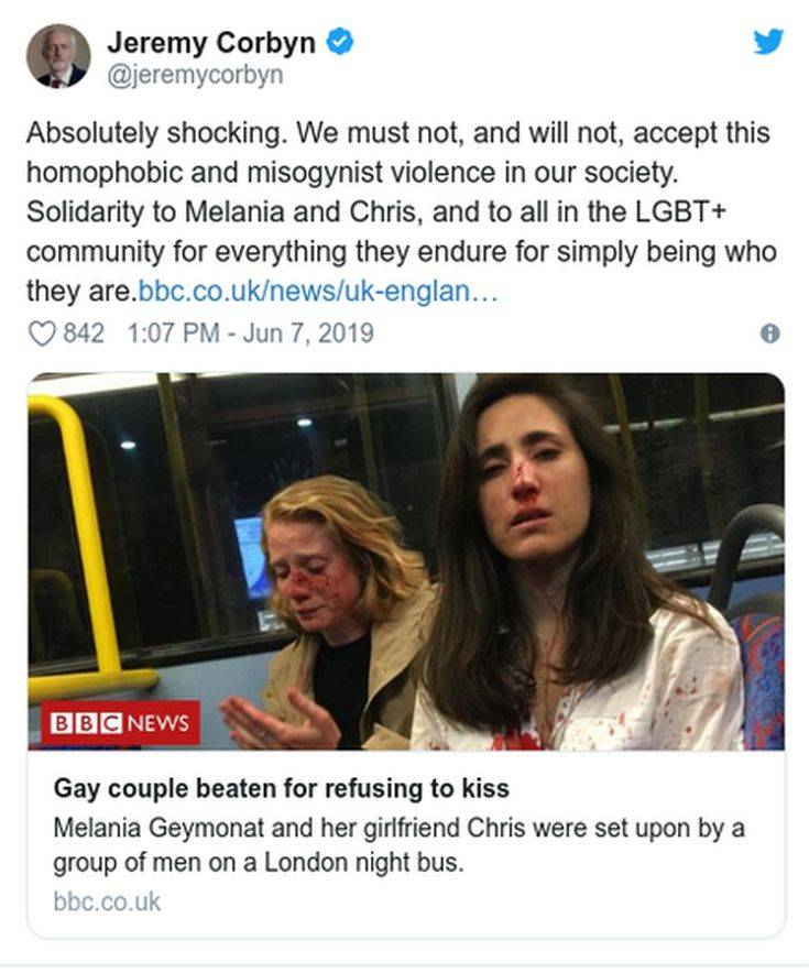 Ο δήμαρχος του Λονδίνου Σαντίκ Καν έγραψε στο Twitter: «Πρόκειται για μια αηδιαστική, μισογυνιστική επίθεση. Εγκλήματα μίσους εναντίον της κοινότητας ΛΟΑΤΚΙ δεν θα γίνουν ανεκτά στο Λονδίνο».