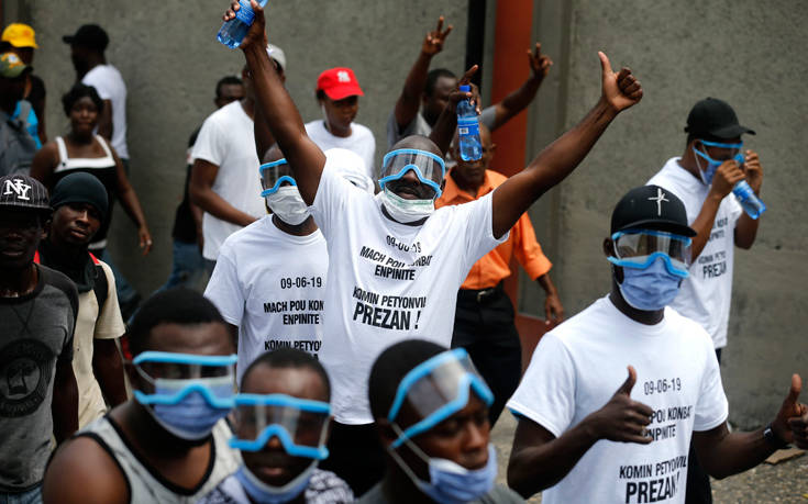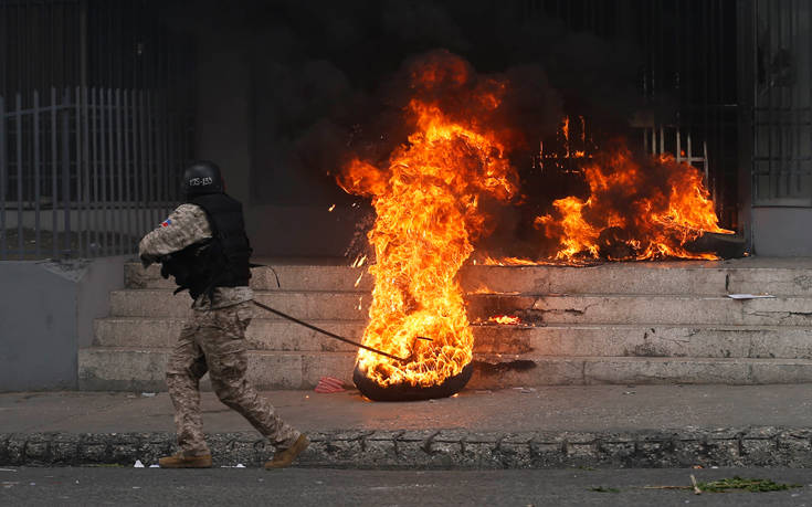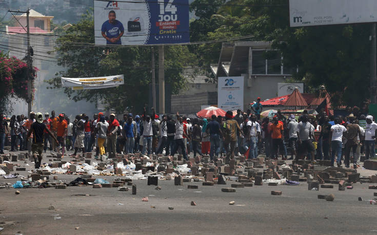 Ενώ διαδηλωτές και αστυνομικοί αντάλλασσαν πέτρες και δακρυγόνα, στο κέντρο του Πορτ-ο-Πρενς ακούστηκαν πυροβολισμοί.