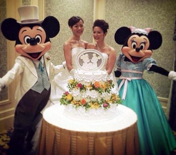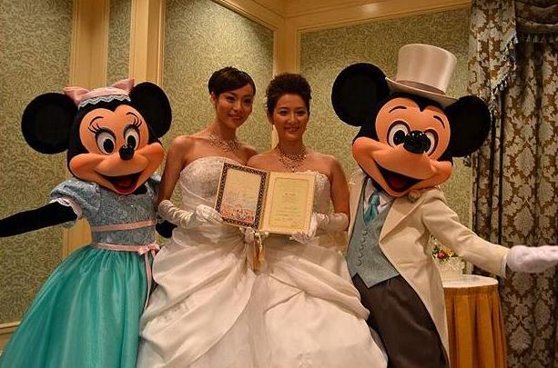 Το ζευγάρι ενώθηκε με τα δεσμά του γάμου στο θεματικό πάρκο του Τόκιο, ενώ ήταν ο πρώτος «γάμος» ομοφυλόφιλων που γίνεται εκεί.