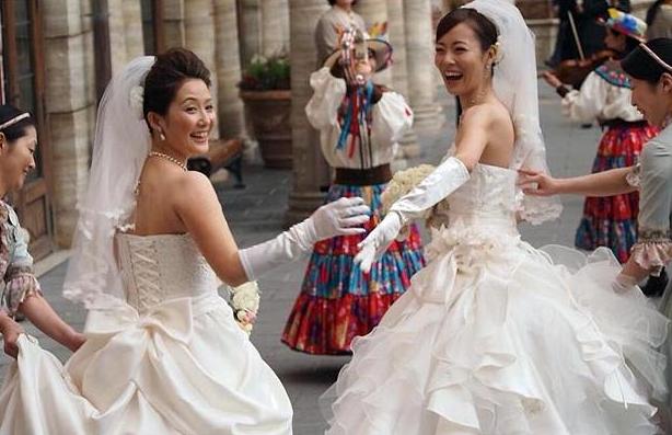 Η Koyuki Higashi και η σύντροφός της Hiroko φόρεσαν τα νυφικά τους και παντρεύτηκαν στο κάστρο της Σταχτοπούτας την περασμένη εβδομάδα.