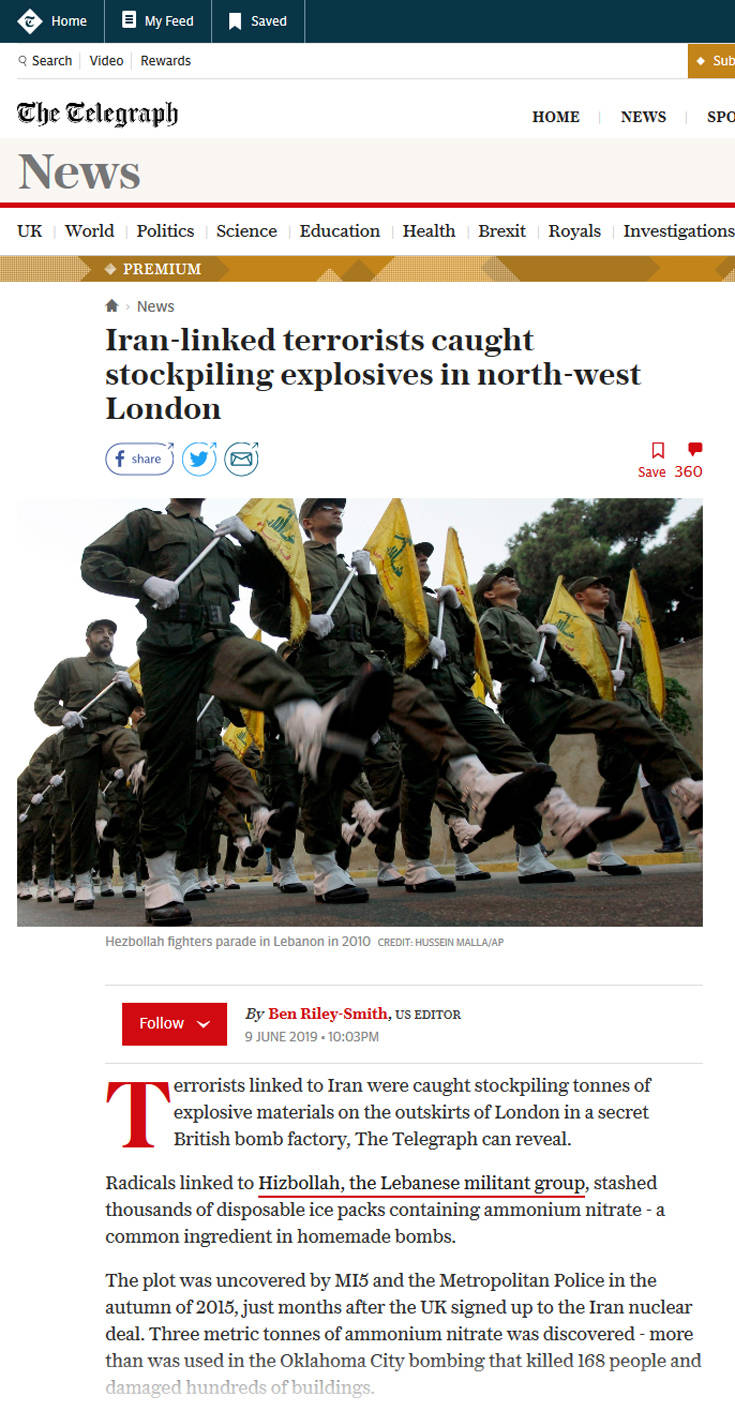 Μυστικό εργοστάσιο κατασκευής βομβών ανακάλυψαν οι αρχές στα προάστια του Λονδίνου, σύμφωνα με δημοσίευμα της εφημερίδας Daily Telegraph, και συνελήφθησαν τρομοκράτες με διασυνδέσεις με το Ιράν να συγκεντρώνουν τόνους εκρηκτικών.