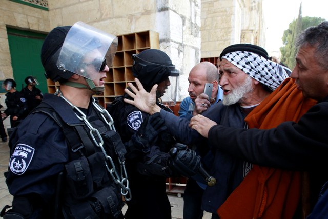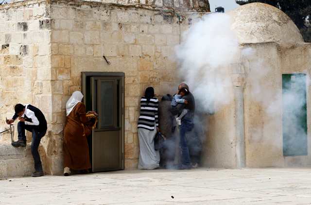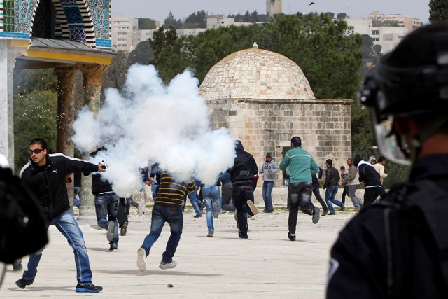 Φωτογράφος του πρακτορείου Reuters ανέφερε ότι οι συγκρούσεις ξέσπασαν αμέσως μετά τις πληροφορίες που μεταδόθηκαν από παλαιστινιακά μέσα ενημέρωσης και ανέφεραν πως ισραηλινός αστυνομικός πέταξε στο έδαφος ένα Κοράνι στις 3 Μαρτίου ενώ απομάκρυνε ομάδα Παλαιστινίων έξω από τις εισόδους της πλατείας.