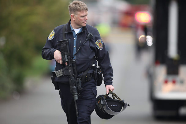 Η τοπική αστυνομία ανέφερε ότι μια γυναίκα που βρισκόταν μέσα στο σπίτι τηλεφώνησε στην άμεση δράση και είπε ότι η γιαγιά της, η οποία έχει ψυχολογικά προβλήματα, είχε αρχίσει να πυροβολεί.