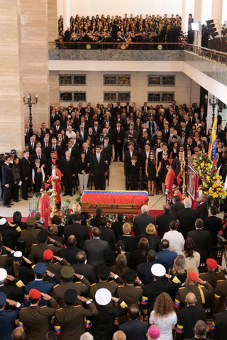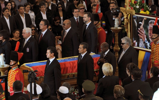 Πλήθος κόσμου, σύσσωμοι οι ηγέτες της Λατινικής Αμερικής αλλά και άλλες πολιτικές προσωπικότητες και αντιπροσωπείες από όλο τον κόσμο απέτισαν ύστατο φόρο τιμής στον εκλιπόντα πρόεδρο της Βενεζουέλας, Ούγκο Τσάβες.