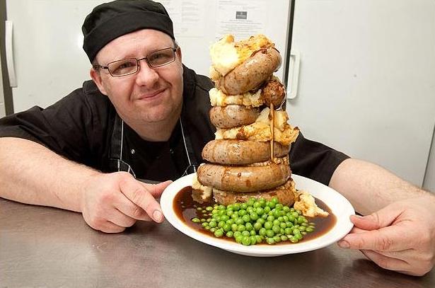 Μια νέα πρόκληση έθεσε ο ιδιοκτήτης μιας κλασικής βρετανικής παμπ του West Yorkshire στους πελάτες του, καλώντας τους πιο τολμηρούς από αυτούς να… καταβροχθίσουν ένα πιάτο που σε ύψος φτάνει τα 30 εκατοστά και αποτελείται από 1,8 μέτρα λουκάνικο!