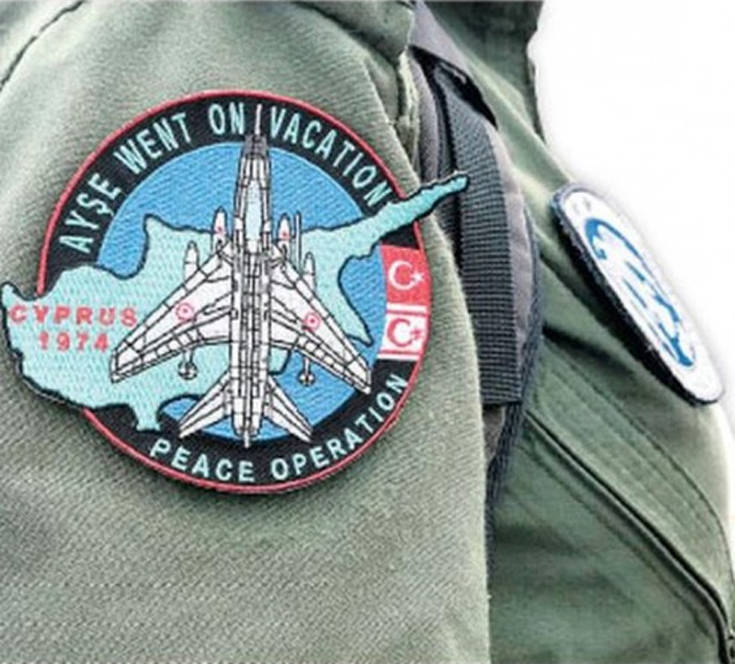 Ο συγκεκριμένος πιλότος της Τουρκικής Πολεμικής Αεροπορίας φέρει στη στολή του -στην πλευρά του δεξιού μπράτσου- ένα προκλητικό σήμα, το οποίο γράφει αγγλικά το συνθηματικό της εισβολής του Αττίλα το 1974 στην Κύπρο, «Η Αϊσέ πάει διακοπές».