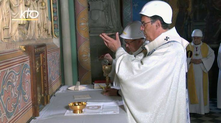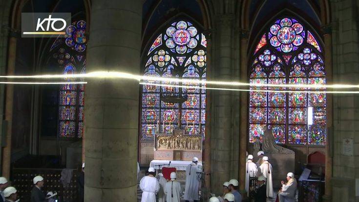 «Με μεγάλη συγκίνηση βρισκόμαστε εδώ για να γιορτάσουμε τον καθαγιασμό του καθεδρικού ναού» είπε ο αρχιεπίσκοπος του Παρισιού Μισέλ Οπετί, που χοροστάτησε στη λειτουργία.