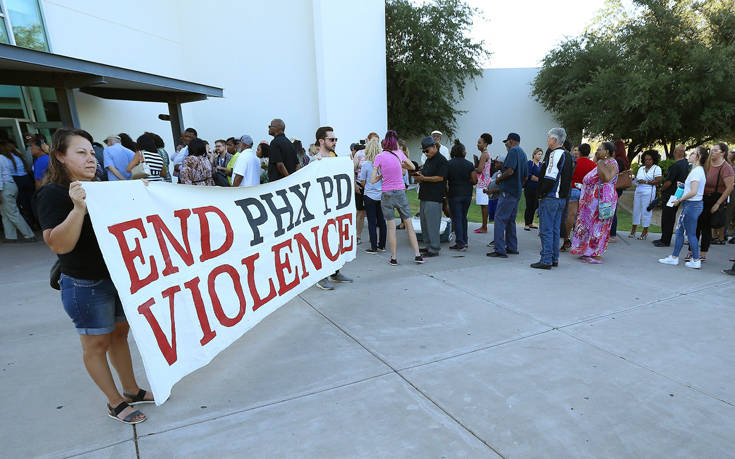 Μέλη της αστυνομίας του Φοίνιξ στην Αριζόνα των ΗΠΑ αλλά και αξιωματούχοι της πόλης έγιναν δεκτοί με αποδοκιμασίες σε μια συνάντηση που πραγματοποιήθηκε χθες Τρίτη μετά την προβολή βίντεο που δείχνει τη βίαιη σύλληψη μιας οικογένειας Αφροαμερικανών επειδή η 4χρονη κόρη τους έκλεψε μία κούκλα.