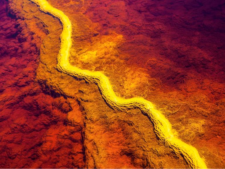 Μοιάζει με έναν γιγαντιαίο ανεμοστρόβιλο που προκαλεί «χάος» στον ουρανό, αλλά αυτή η εικόνα είναι απλώς η αντανάκλαση ενός ποταμού που διατρέχει ένα ορυχείο.