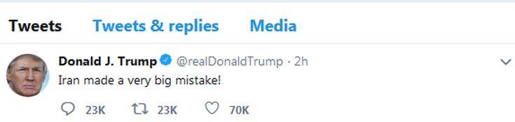 Η τιμή του πετρελαίου αυξήθηκε κατακόρυφα σήμερα στη Νέα Υόρκη, μετά την ανάρτηση του προέδρου των ΗΠΑ Ντόναλντ Τραμπ στο Twitter, όπου προειδοποιούσε ότι το Ιράν «διέπραξε τεράστιο λάθος» με την κατάρριψη του αμερικανικού μη επανδρωμένου αεροσκάφους.