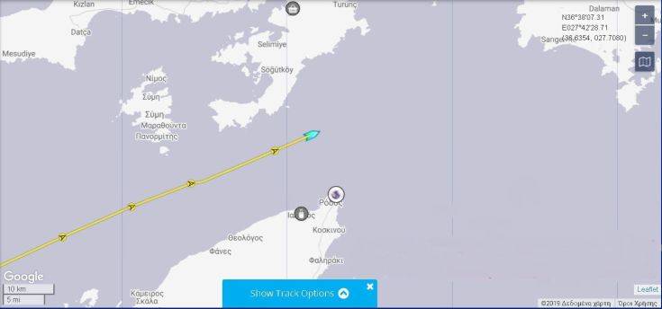 Ανάμεσα στα δυτικά παράλια της Τουρκίας και βορειανατολικά παράλια της Ρόδου, κινείται από τις πρώτες πρωινές ώρες Κυριακής το τουρκικό γεωτρύπανο «Γιαβούζ».