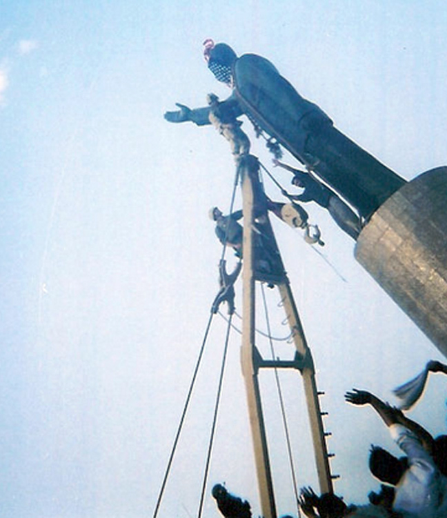 Γκρεμίζοντας το τεράστιο άγαλμα του Σαντάμ Χουσεΐν στη Βαγδάτη