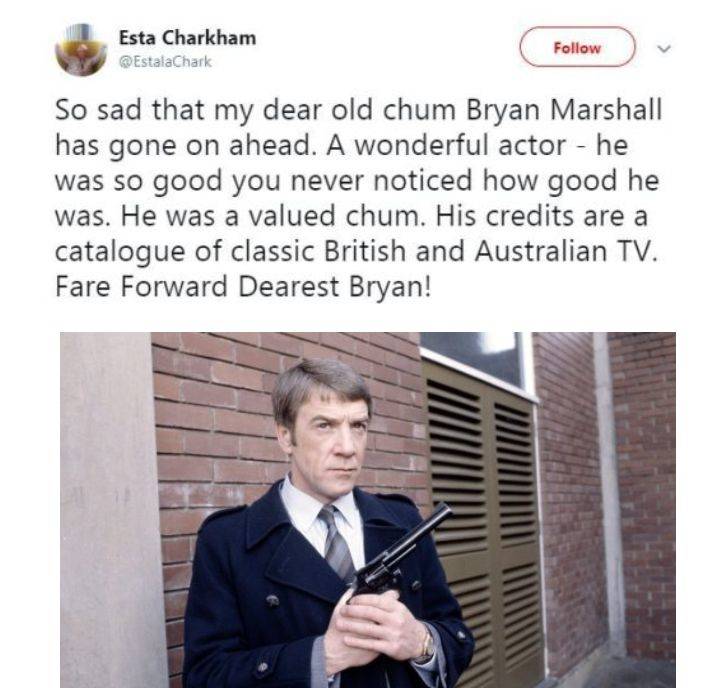 Το δυσάρεστο γεγονός επιβεβαίωσε η ατζέντης του ηθοποιού, Esta Charkham με ανακοίνωση στον λογαριασμό της στο Twitter: «Είμαι πολύ λυπημένη που ο αγαπημένος μου φίλος Μπράιαν Μάρσαλ έφυγε. Ήτα ένας υπέροχος ηθοποιός και ανεκτίμητος φίλος».