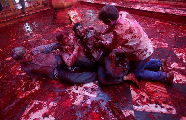 Το «φεστιβάλ των χρωμάτων» γιορτάζει τον ερχομό της άνοιξης με τους συμμετέχοντες να πετούν ο ένας στον άλλον πολύχρωμα μπαχαρικά και πέταλα λουλουδιών, γράφει η Daily Mail.