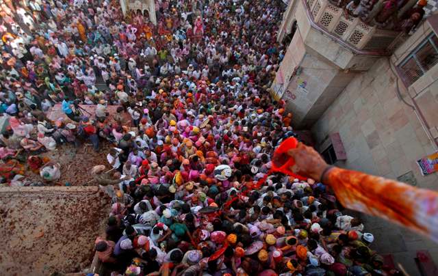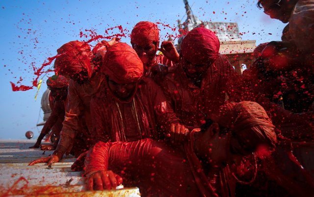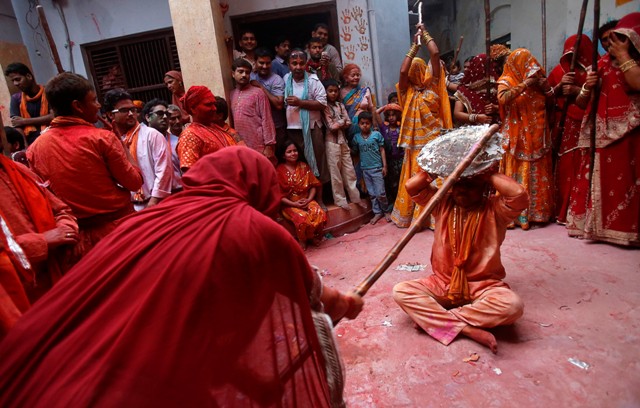 Χιλιάδες Ινδουιστές κατέκλυσαν χτες τα μικρά χωριουδάκια Nandgaon και Barsana στο βόρειο κρατίδιο Uttar Pradesh για να συμμετάσχουν στην ιερή γιορτή Lathmar Holi.