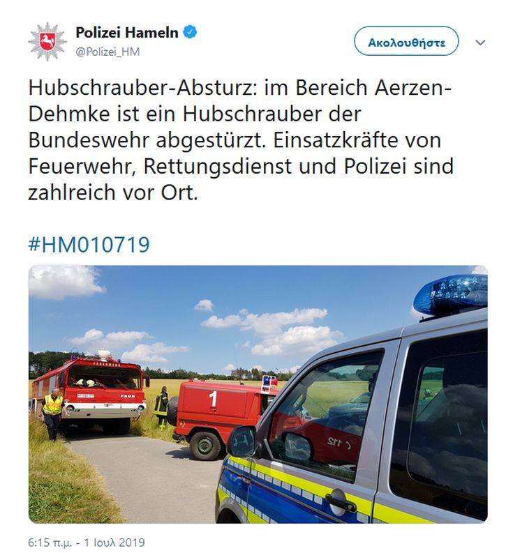 Το εκπαιδευτικό ελικόπτερο της γερμανικής Πολεμικής Αεροπορίας είχε απογειωθεί από τη βάση του Μπίκεμπουργκ, νοτιοδυτικά του Ανόβερου και λίγο πριν συντριβεί εκτελούσε χαμηλή πτήση.