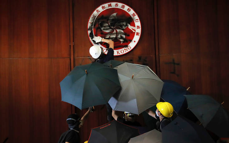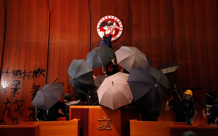 Οι διαδηλωτές, που αντιτίθενται στην προσκείμενη στο Πεκίνο κυβέρνηση του Χονγκ Κονγκ, εισέβαλαν σήμερα, βράδυ Δευτέρας τοπική ώρα, στο κτίριο του κοινοβουλίου, αφού έσπασαν τις τζαμαρίες, σύμφωνα με τις εικόνες που προβάλλουν τηλεοπτικά δίκτυα.