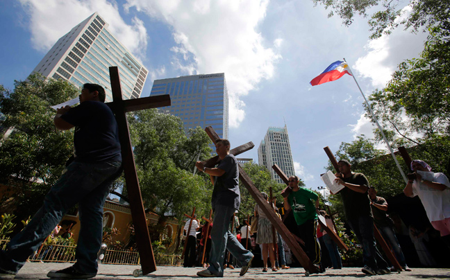 Το τελετουργικό της Μεγάλης Παρασκευής είναι η σημαντικότερη στιγμή των εορτασμών του Πάσχα στις Φιλιππίνες, μια χώρα της οποίας το 80% των 94 εκατομμυρίων κατοίκων είναι καθολικοί.