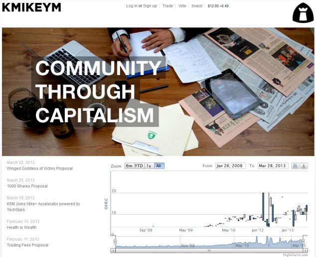 Έφτιαξε μια ιστοσελίδα, την KmikeyM.com, όπου ο κάθε μέτοχος θα είχε λόγο στο ποιες από τις ιδέες του θα έπρεπε να προωθήσει περισσότερο.