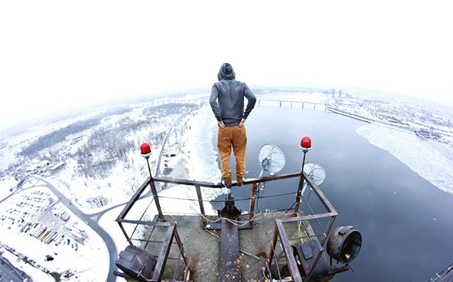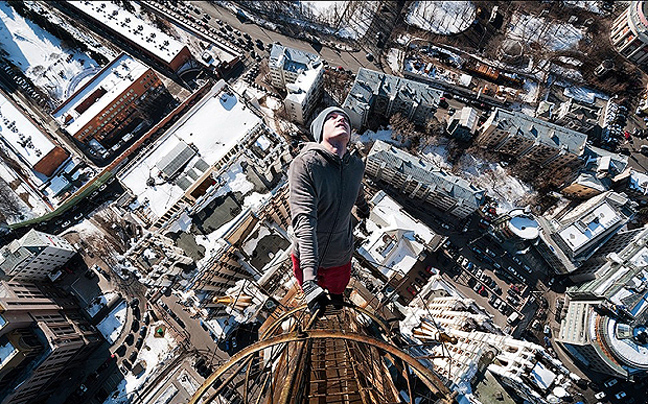 Αν πάσχετε από ακροφοβία, ίσως να μην πρέπει να δείτε τις παρακάτω φωτογραφίες του Ουκρανού «spiderman». Ένας 26χρονος ανεβαίνει σε διάφορους πύργους στο Κίεβο και στη Μόσχα και κρέμεται στις άκρες των κτηρίων.